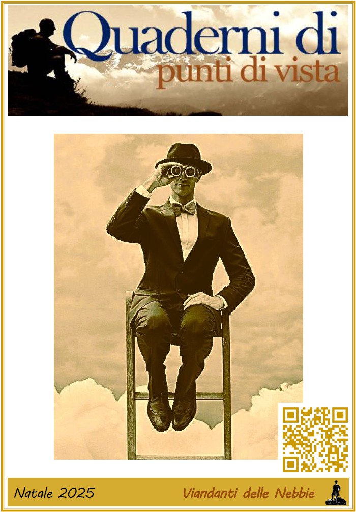 In concomitanza con la mostra-rassegna delle loro attività (la prima, e con ogni probabilità anche l’unica) i Viandanti delle Nebbie offrono ai “followers” una strenna natalizia. L’idea iniziale prevedeva una plaquette sul modello dei vecchi calendarietti profumati dei barbieri, per i quali proviamo tanta nostalgia (per i libretti, ma anche per i barbieri): poi abbiamo optato per una linea meno frivola. Distribuiremo quindi cinquanta libretti (il che significa presumere, molto ottimisticamente, un numero di lettori doppio rispetto a quelli del Manzoni) che vogliono suggerire da dove arrivano i Viandanti, chi c’è idealmente alle loro spalle. …