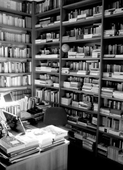 I criteri di collocazione dei libri possono essere svariati. Non tutti sono sensati, anche se danno l’impressione di riuscire funzionali. Trovo ad esempio irritante la collocazione per ordine alfabetico. Può andare bene in una biblioteca pubblica, o in una libreria, dove l’utenza va in cerca di un’opera ben precisa e deve poterla facilmente reperire. Ma è assurda in una biblioteca privata. La biblioteca privata non è una raccolta di libri. È un archivio della memoria che riveste funzioni ben diverse da quella pura e semplice del contenitore. Deve offrire un quadro ragionato delle possibilità, suggerire percorsi, raccontare storie. Se ho in mente un tema, e voglio approfondirlo cercando di sapere come lo hanno trattato autori diversi in diverse aree linguistiche, devo poter fare scorrere lo sguardo su titoli che seguono un certo ordine temporale, magari partendo da un preciso periodo o limitandomi ad un’area specifica. Una volta rintracciato in un autore il tema in questione, saranno le parole stesse di quest’ultimo a evocarmi il ricordo di altre pagine, a rimandarmi ad altri autori. Più che mai questo criterio è importante per la saggistica, storica, letteraria o scientifica che sia.