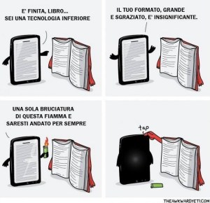 ne una schiera di bit concessa in licenza per il mio solo utilizzo, schiera di bit costantemente a rischio di essere sovrascritta dalle controindicazioni sul bugiardino. A questo punto la domanda si trasforma e diventa: ma allora, un eBook è sempre un libro oppure no? In effetti la risposta è meno sorprendente di quanto possa sembrare (o forse di più, dipende da voi): no, un eBook non è un libro. Distinzione peraltro in accordo con le leggi fino a poco tempo fa, in quanto in materia di tassazione solo ai libri cartacei era riconosciuta l’IVA agevolata al 4%, di cui non beneficiavano gli eBook; segno che, evidentemente, un eBook non aveva i requisiti per essere considerato un libro, opinione che lo Stato italiano ha cambiato nel 2015 applicando l’IVA agevolata anche ai “libri” digitali.