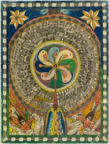 La vita di Adolf Wölfli sarebbe tutta qui, una vicenda simile a quella di tanti altri poveri disgraziati come lui. Non fosse che nella reclusione manicomiale Adolf trova una via di sfogo alla sfrenatezza del suo carattere: impara a dipingere, a scrivere e persino a suonare e a comporre musica. Fa naturalmente tutte queste cose a modo suo: dipinge muri, porte, tutte le superfici disponibili dell’ospedale, realizza più di mille disegni e dipinti, scrive un’autobiografia che alla fine consterà di più di venticinquemila pagine (e che intitola significativamente La leggenda di sant’Adolfo), litiga e passa spesso alle vie di fatto con tutti gli altri internati, che non vogliono riconoscere la sua grandezza artistica. Finché il suo caso non diventa oggetto di studi psichiatrici specifici (se ne occupa persino Freud). Solo diversi anni dopo la sua morte però l’originalità della sua opera comincia ad incuriosire anche il mondo artistico, a partire da Breton e dai surrealisti. A farlo definitivamente riscoprire, inserendolo nella corrente dell’“Art Brut”, è nell’immediato dopoguerra il pittore francese Jean Dubuffet.