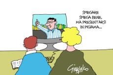 Chi ha figli in età scolastica sta anche facendo i conti con la didattica via web. È encomiabile la dedizione con cui molte insegnanti si sono adeguate, imparando in pochi giorni a usare strumenti di non immediata comprensione, specie per chi non è nativo digitale ma più vicino al pallottoliere. Stanno facendo il possibile per completare il programma didattico, mettendo in campo tutte le loro capacità affabulatorie per catturare nelle video-lezioni l’attenzione di bambini distratti da contesti domestici sicuramente non propizi alla concentrazione: magari nell’altra stanza mamma passa l’aspirapolvere, e papà tira lo sciacquone.