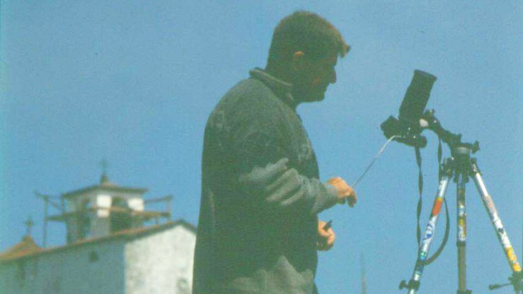 Poso lo zaino, mi siedo su un ceppo e accendo una sigaretta, mentre lo guardo camminare a ritroso, fermarsi ancora, catturare un altro scorcio …