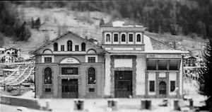 Per preparare la cosa ho pensato di lustrare un po’ gli occhi dedicandomi ad un album sull’architettura di questo particolare settore, ma non solo. I criteri si sono definiti cammin facendo, alla partenza erano solo emotivi. Le immagini che ho scelto potranno essere accusate di una bellezza facile, dolciastra, persino stucchevole, come bene o male tutto quello che ruota attorno all’Art Nouveau; o, nel caso dei disegni di Sant’Elia, di giocare su suggestioni forti, ma del tutto avulse dalla realtà e dalla concretezza. Non lo ignoro, e ammetto anche che in queste obiezioni possa esserci del vero. Ma non toccano il senso del mio discorso: non sono qui a disquisire di architettura, ci mancherebbe solo questo. Neppure però sto parlando di gusti strettamente personali: non credo sia capitato solo a me di inchiodare di colpo l’auto alla improvvisa comparsa, dietro una curva, di uno di questi edifici: o di essermi soffermato ad ammirare in uno stupito silenzio un imponente fabbricato risalente ad oltre un secolo fa e ancora perfettamente intatto, senza aver conosciuto alcuna opera di restauro o alcun intervento conservativo, come costruito ieri (anzi , no, l’avessero costruito ieri mostrerebbe già segni di invecchiamento). Nel caso specifico si trattava della dismessa centrale SEB di Cedegolo, che oggi ospita un museo dell’energia idroelettrica, per la quale non è stato necessario nemmeno un lavoro di ripulitura esterna. Prima che iniziassero i lavori di riconversione, quando l’ho vista per la prima volta, era esattamente come potete vederla nell’immagine d’apertura.