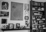 Dalla mensola del caminetto ci guardano infine una foto di Camus, una di Camillo Berneri ed una di Darwin. In mezzo il piccolo busto di Leopardi. Appesi al montante dello scaffale di sinistra ancora un ritratto di Leopardi e quello di Gobetti disegnato da Casorati. Direi che la galleria dei miei affetti è al completo.