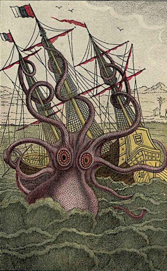 Arrivato alla soglia dei cinquant’anni, posso affermare di essermi costruito la mia (credo) solida Pequod che naviga su un oceano tranquillo, fatto di famiglia, amici, lavoro e certezze. Al momento non vedo l’ombra oscura sotto la chiglia: ma temo comincino ad aggrapparsi ad essa alcuni tentacoli degli “oramai”, riferiti a ciò che non ho fatto, provato e visto. Dovrò premunirmi per tempo, per abbozzare almeno una risposta adeguata, prima che mi ghermiscano. Levigare l’arpione e controllare le vele per tentare una fuga, quando il Kraken mostrerà il suo occhio ammaliante.