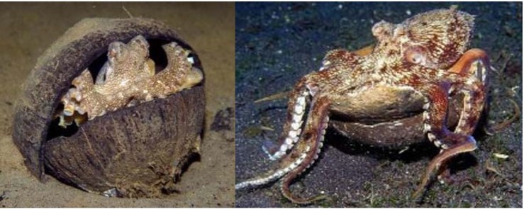 Evidentissimi sono i segni di intelligenza osservati in alcuni polpi, sia in cattività che in natura – per esempio la risoluzione di problemi, l’uso di strumenti, l’esplorazione di oggetti, il gioco.