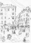 Dopo questi eventi apparentemente insignificanti, avviene una specie di riconciliazione empatetica con la città, che mi risulta ora intimamente vicina. Ripercorro le stesse vie di prima e tutto mi sembra trasformato in senso positivo. I quattro piccoli eventi hanno agito come una cura antidepressiva ed in maniera così efficace che, girando per la periferia storica di Ovada, mi sento come se la costruissi io mentalmente, quasi fossi uno dei suoi pianificatori. Corso Martiri della Libertà mi esalta per il senso di futuro urbano che emana ancora, nonostante siano passati tanti anni dalla sua apertura, mi commuovo nel vedere, nella piazza “nuova”, la prevalenza monumentale delle scuole elementari, quasi un inno al progresso fondato sull’istruzione primaria di un proletario desideroso di elevarsi, capisco il senso recondito di corso Martiri: un’apertura verso il Turchino, verso la Genova “tonante”, e un preludio alla stazione, imbarcadero per il mondo.